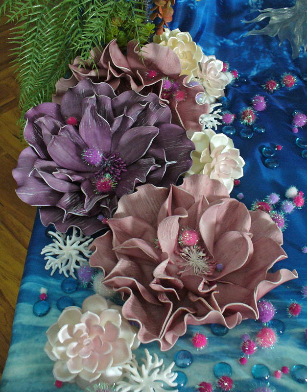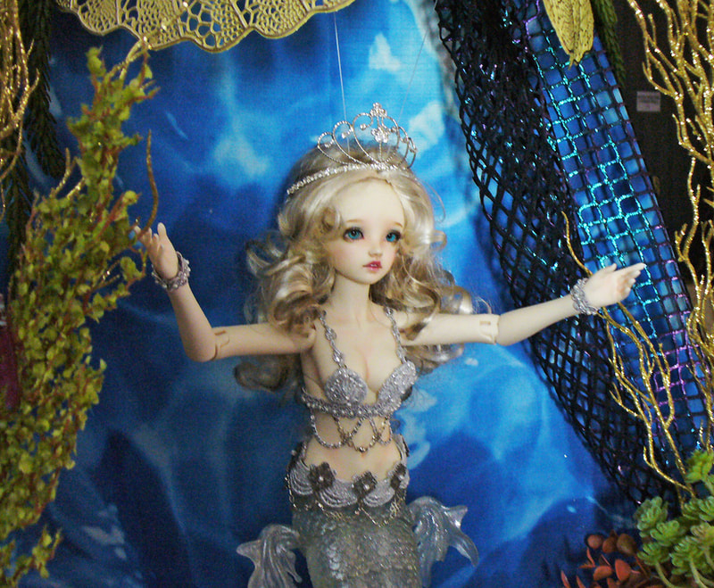Instead of the expected shells and fish for the scene, I used foliage and decorations to suggest a fantasy water abode.